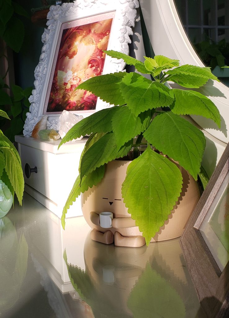 Meet Sprockmorton, head of security. He enjoys an early morning cup of coffee while the morning sunlight pours in. A fun fact about Sprockmorton: Leaves grow out of his head when he gets a good idea.